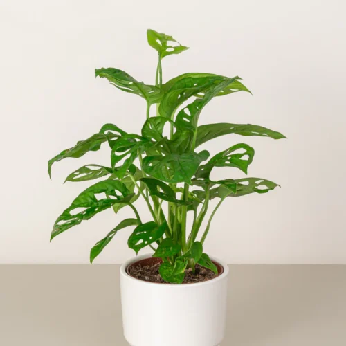 A tropical evergreen with large, heart-shaped leaves with holes, giving it a unique, "Swiss cheese" appearance.